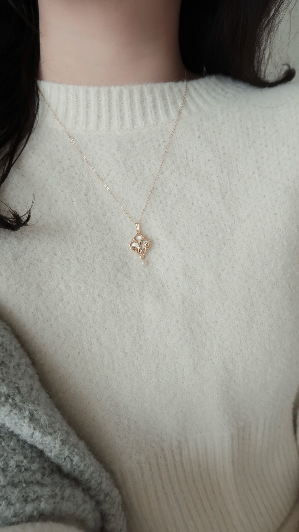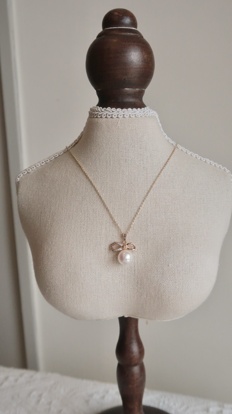 垂墜感燒花邊蝴蝶結項鍊(美國注金)