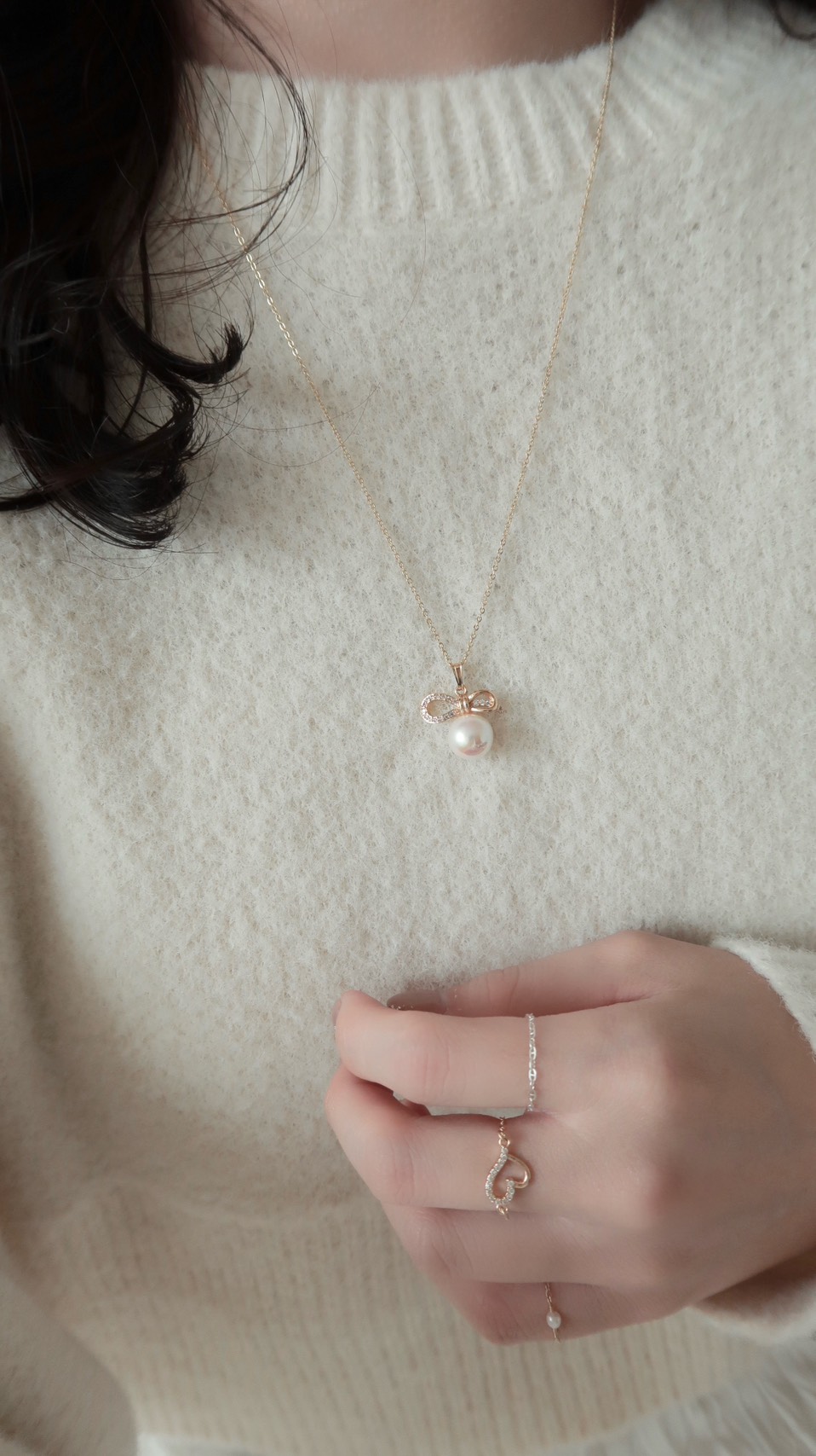 蝶戀珍珠鋯石鍊戒