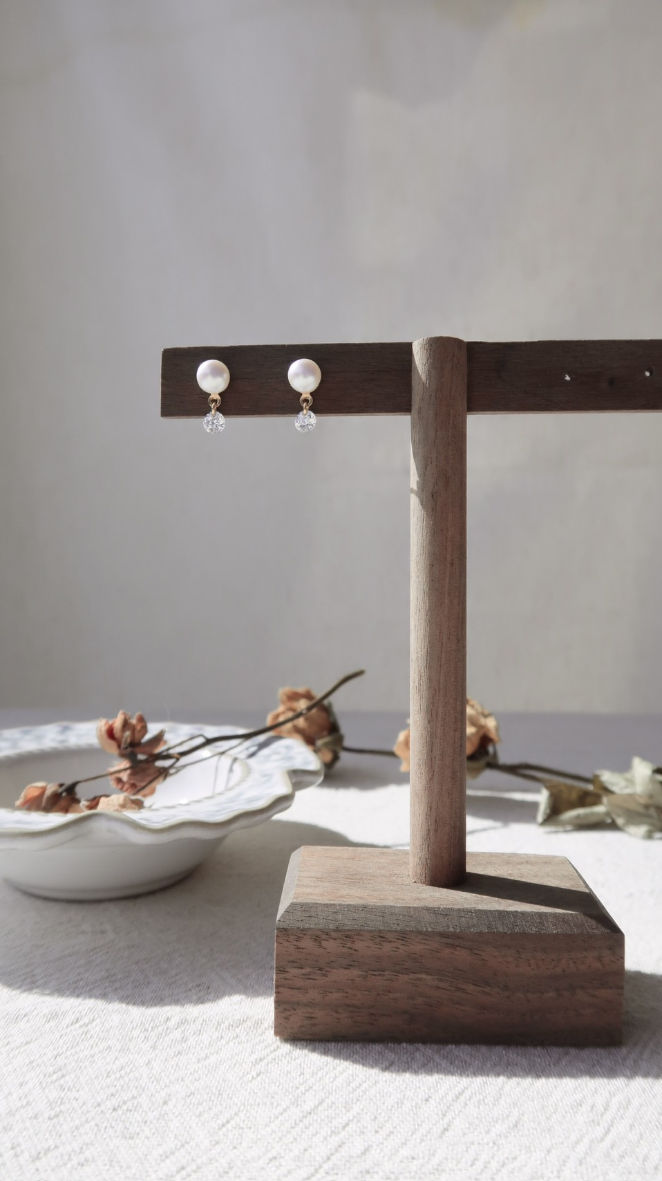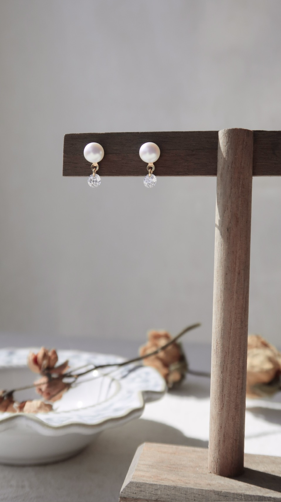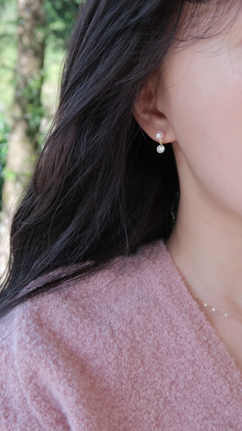 裸鑽鋯石珍珠耳環