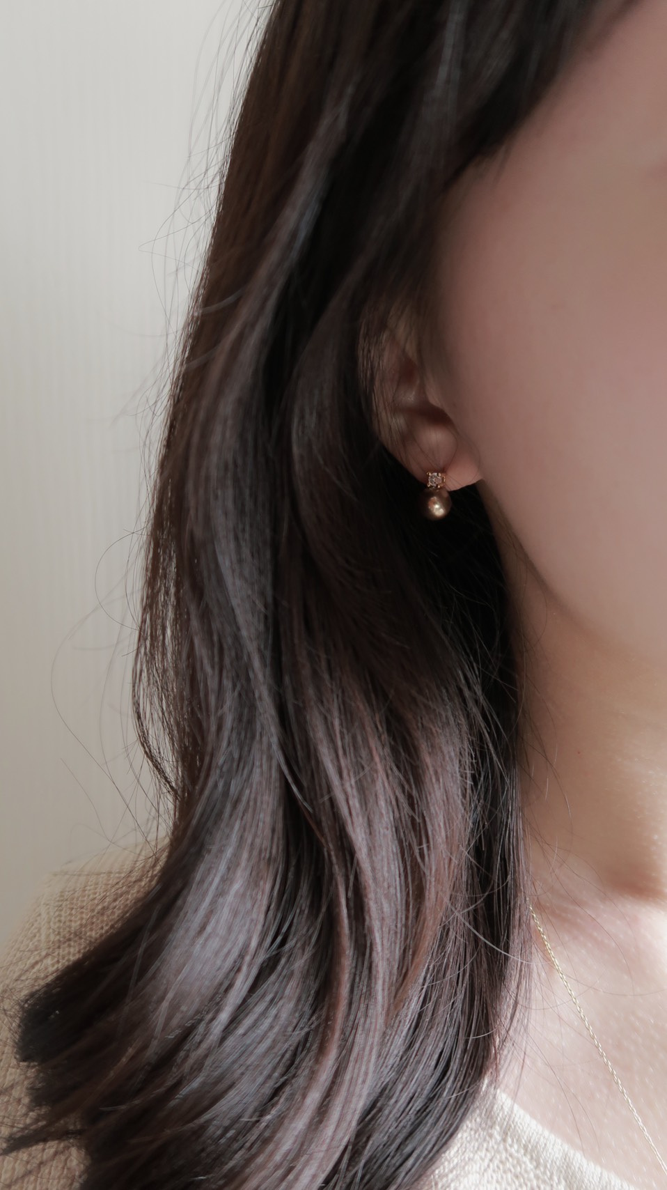 (秋冬限定新色)黛安娜王妃珍珠耳環(琥珀棕)