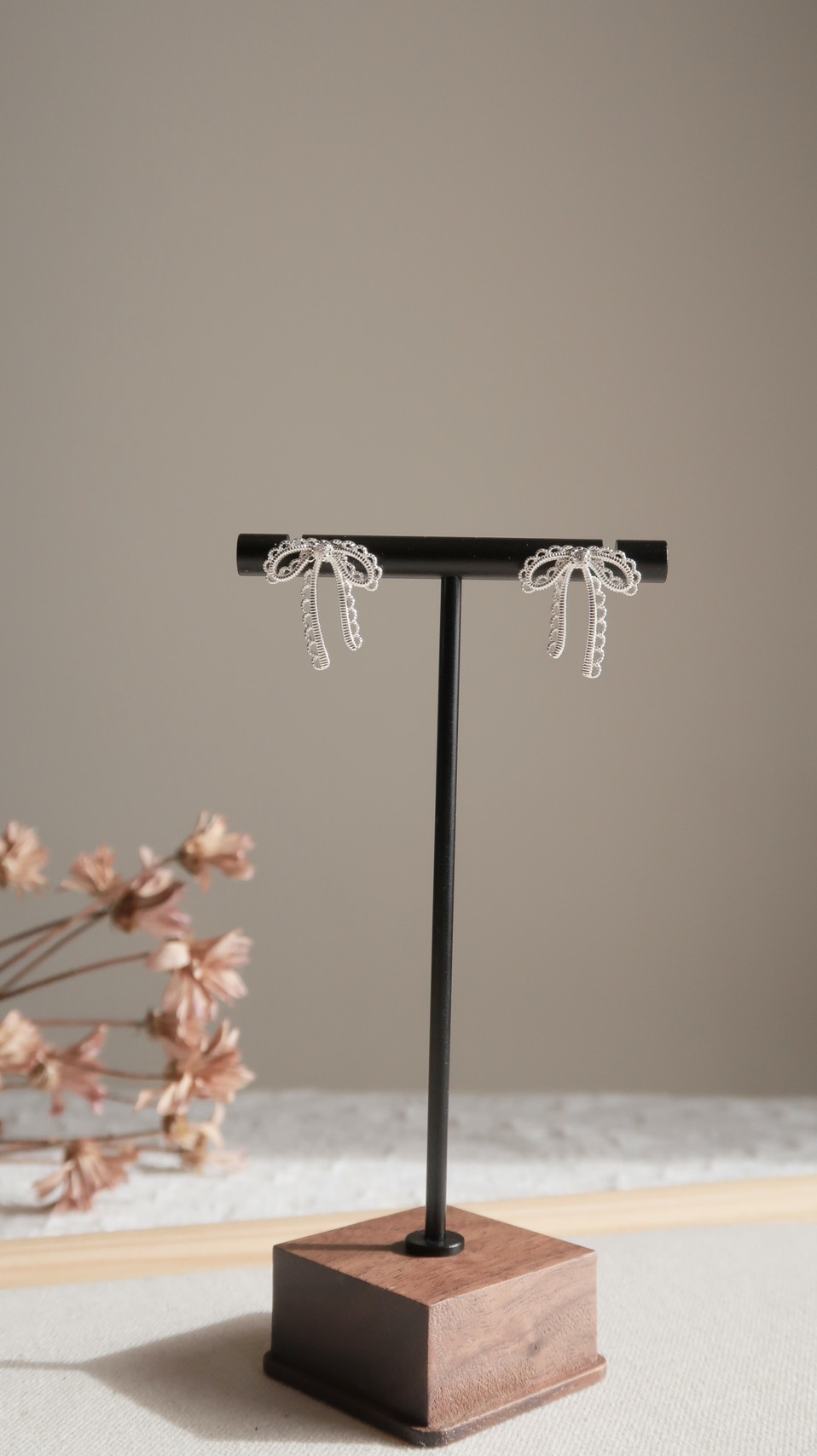 垂墜燒花邊蝴蝶結耳環(silver)