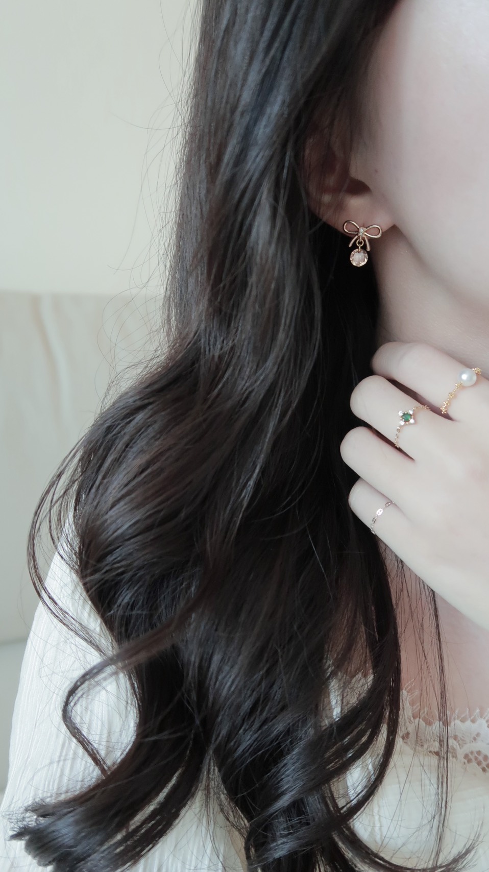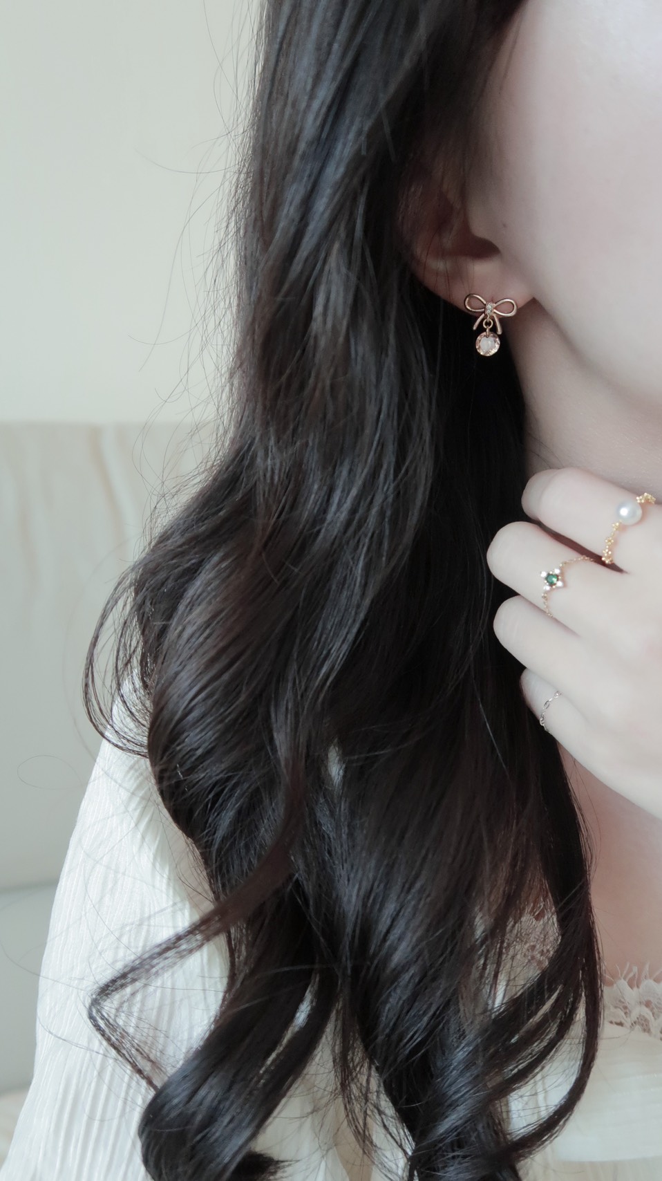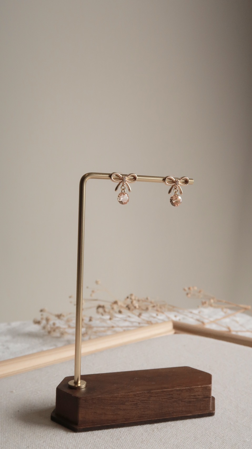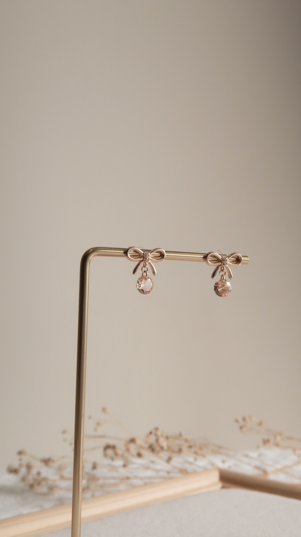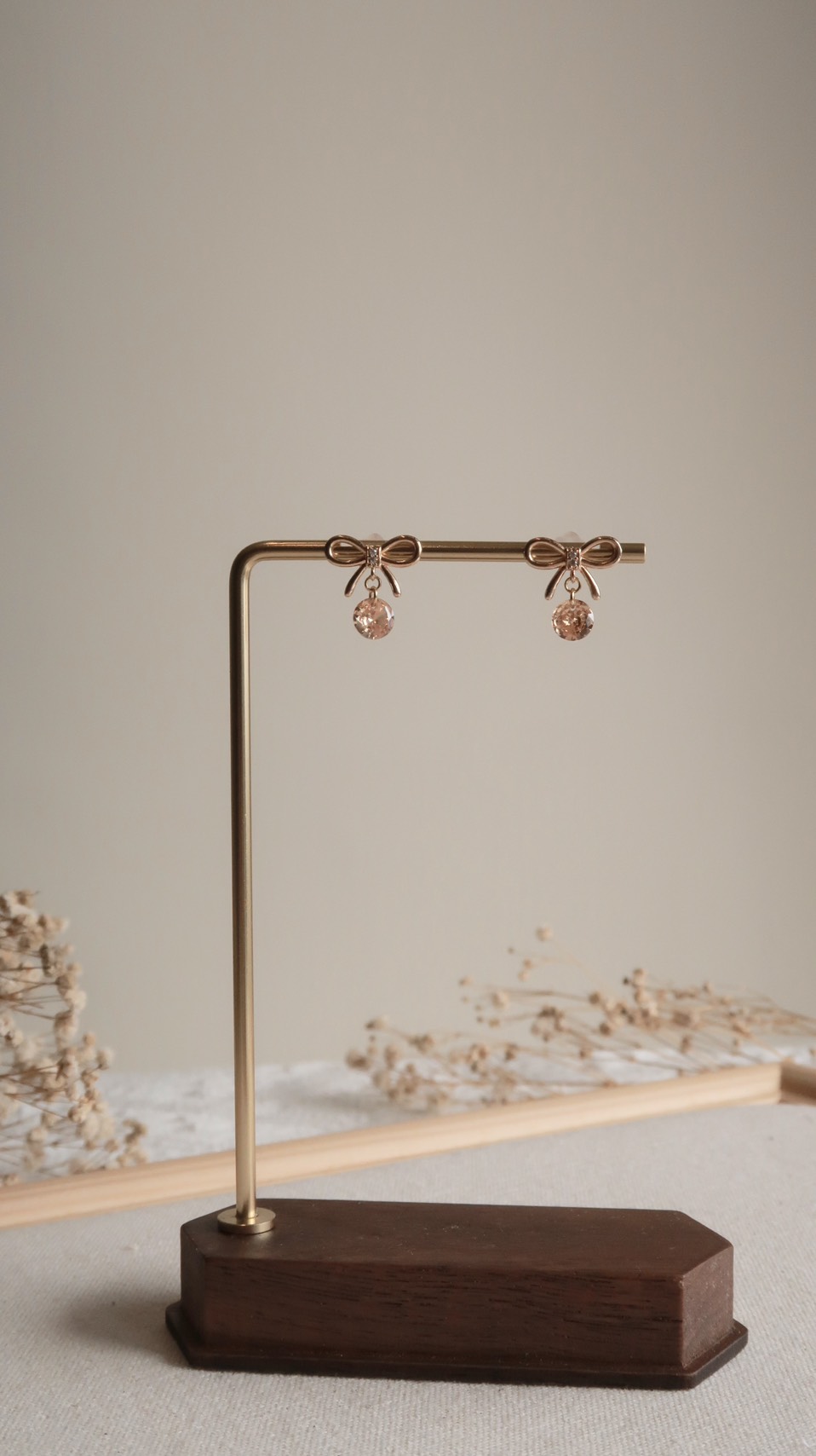 (闆娘最愛)蝴蝶結香檳粉橘裸鑽鋯石耳環