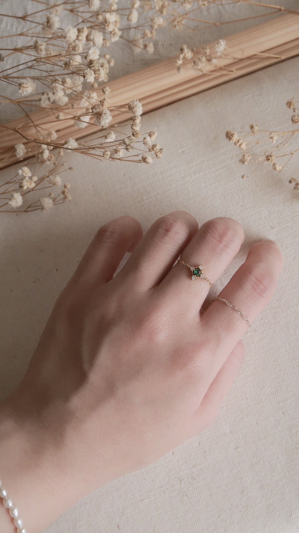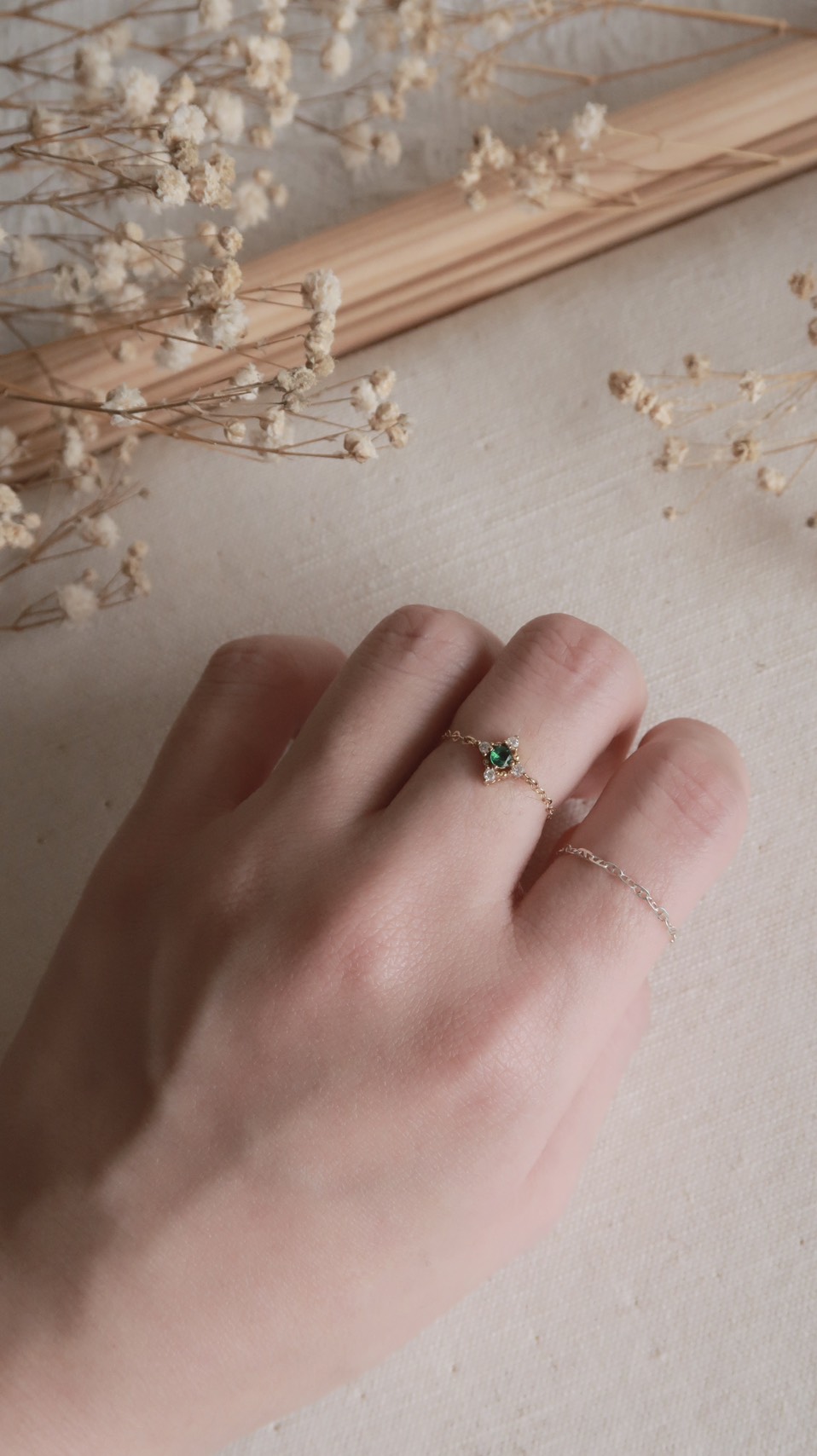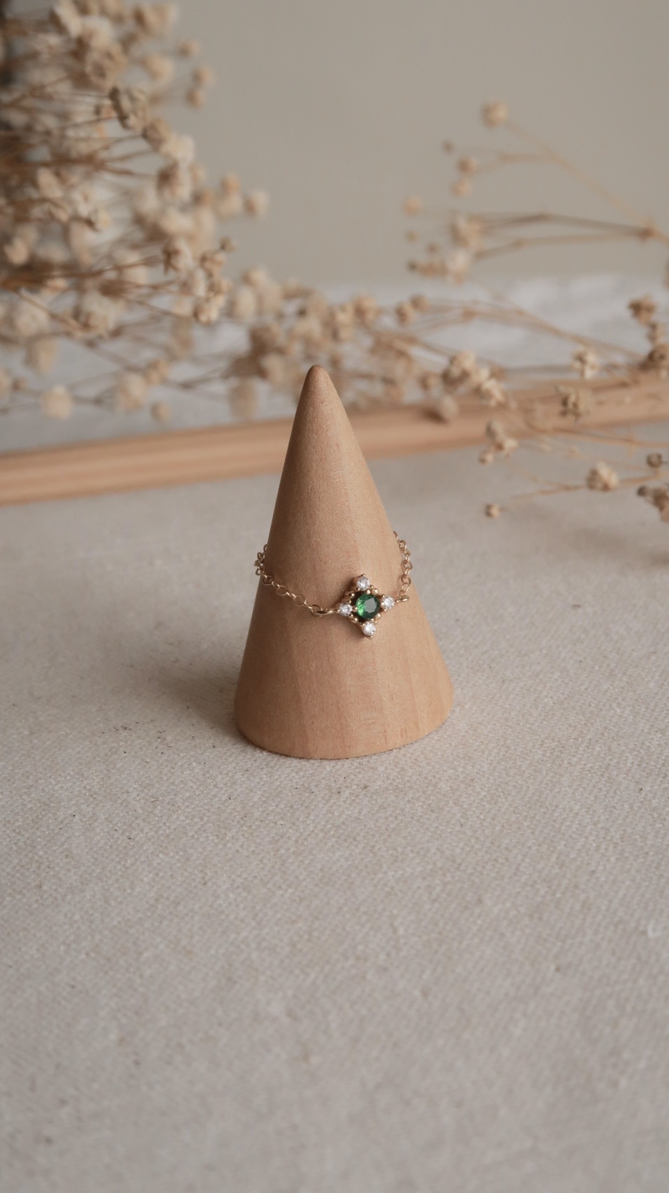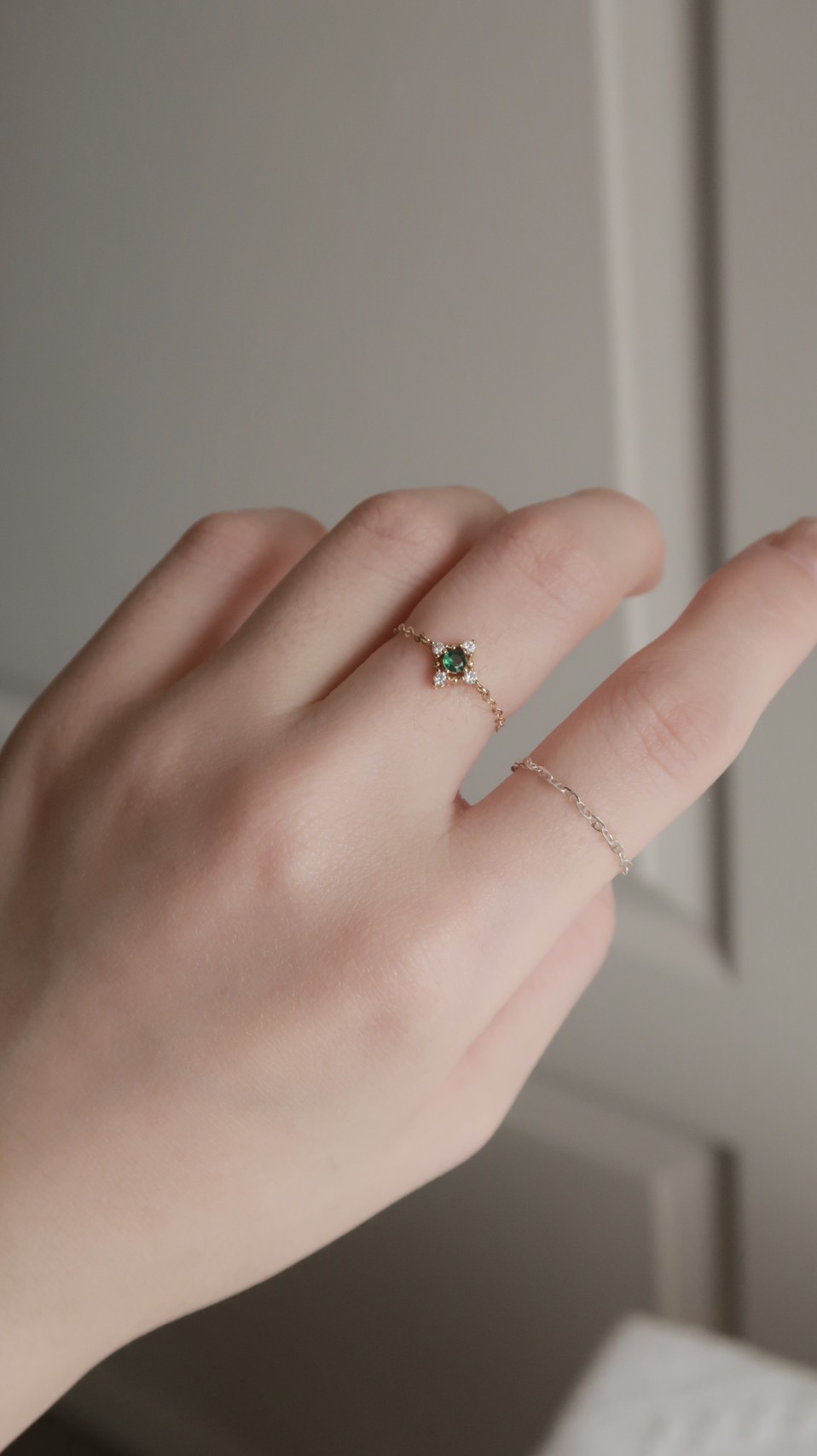 優雅代名詞復古祖母綠鋯石鍊戒(美國注金)