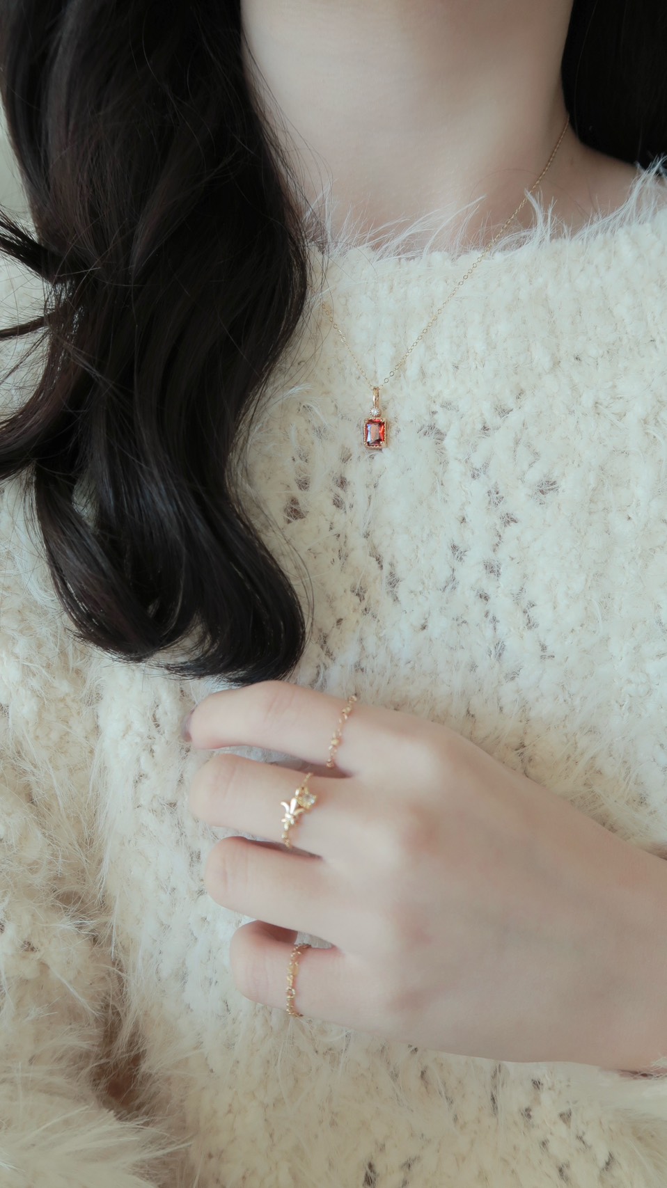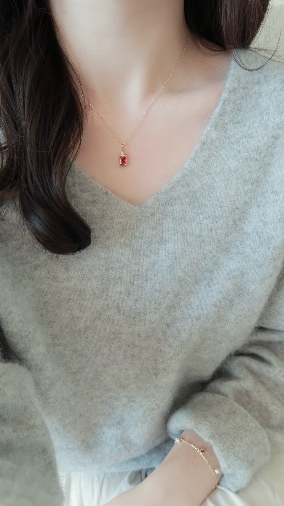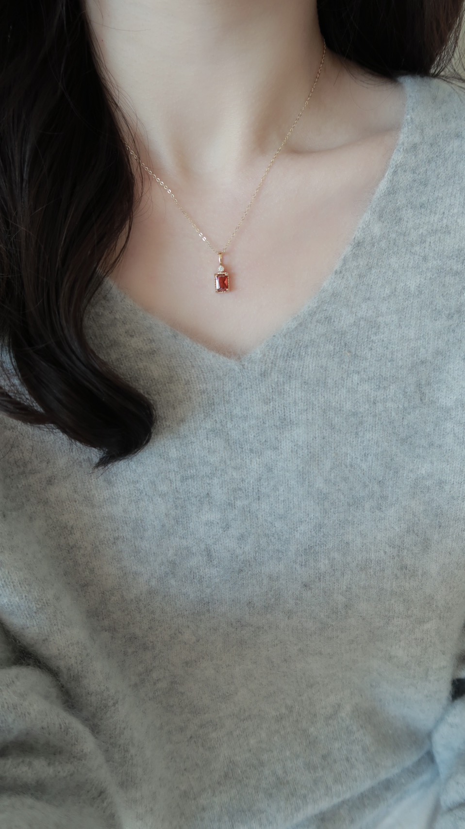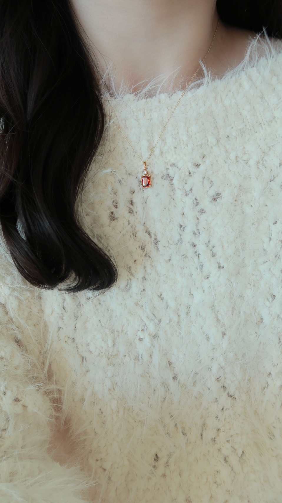 冬日一抹紅精緻紅鋯石項鍊