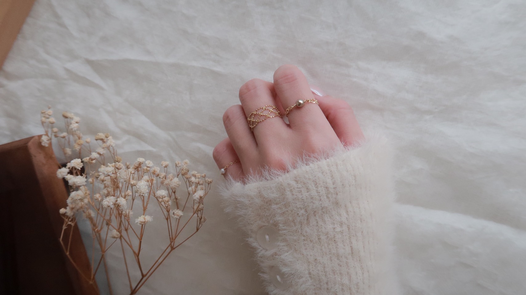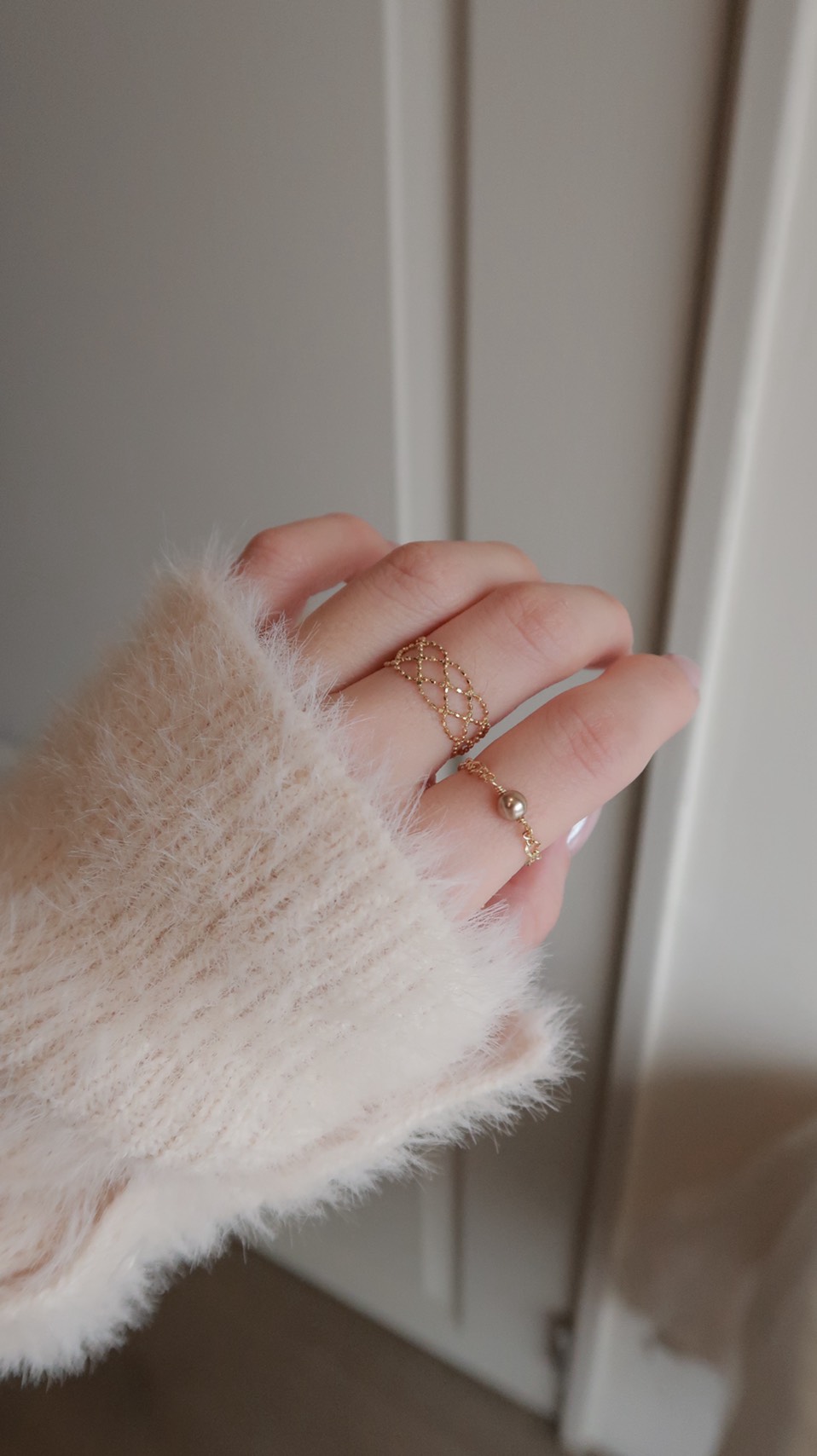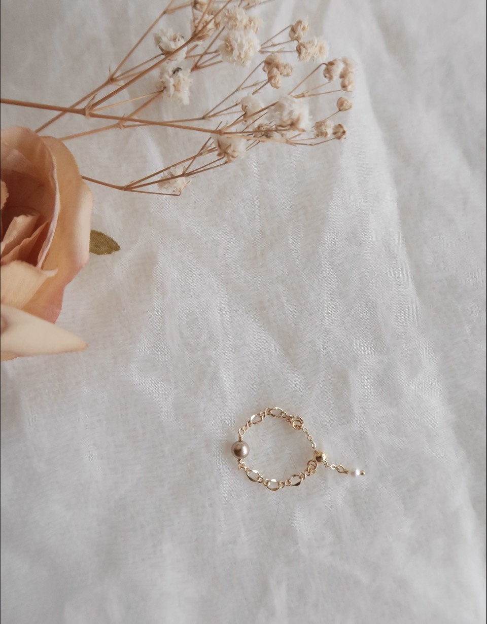 富貴氣質琥珀金奧地利珍珠鍊戒