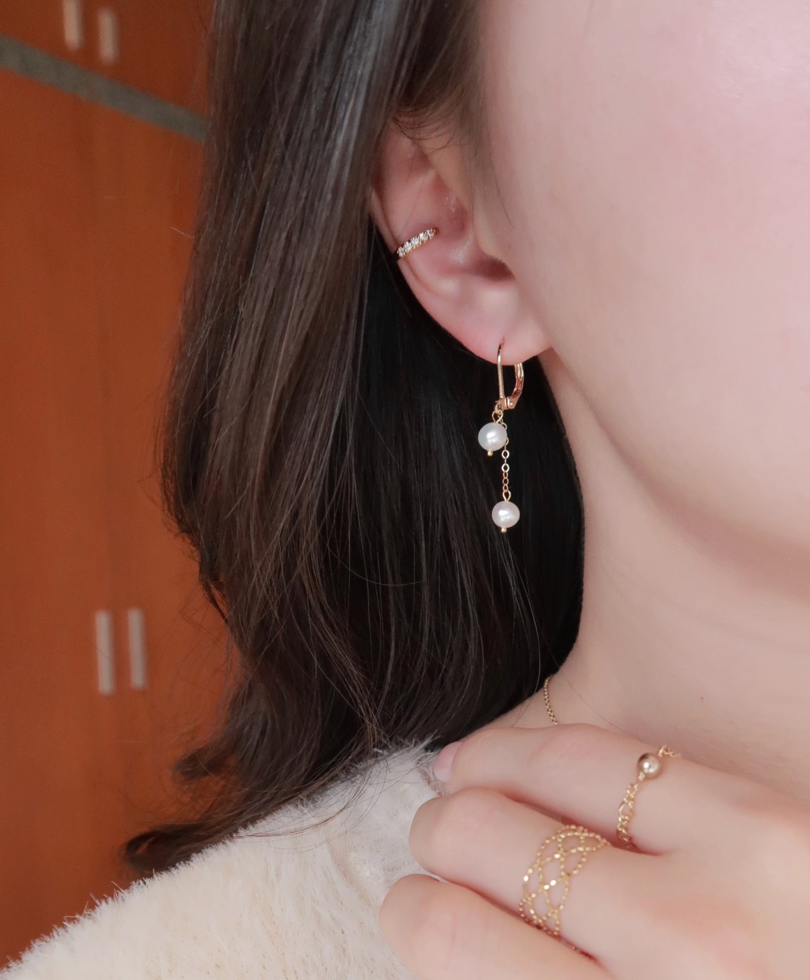 闆娘推薦!!高品天然圓圓珍珠垂墜耳勾