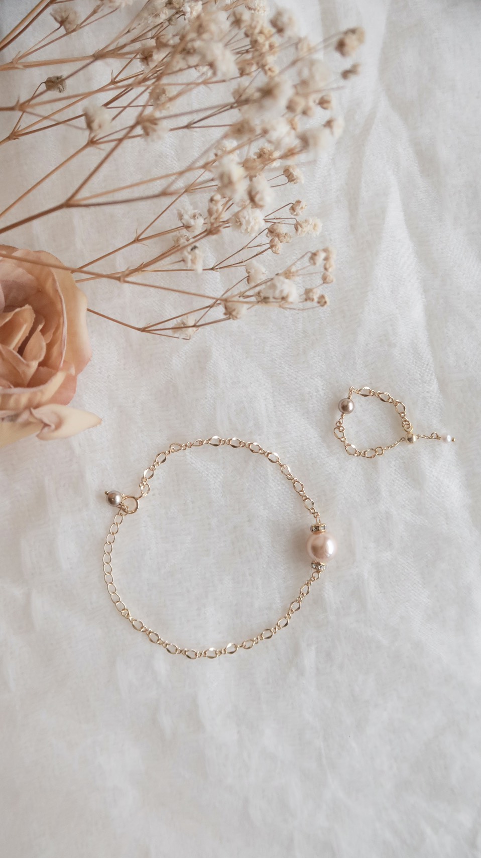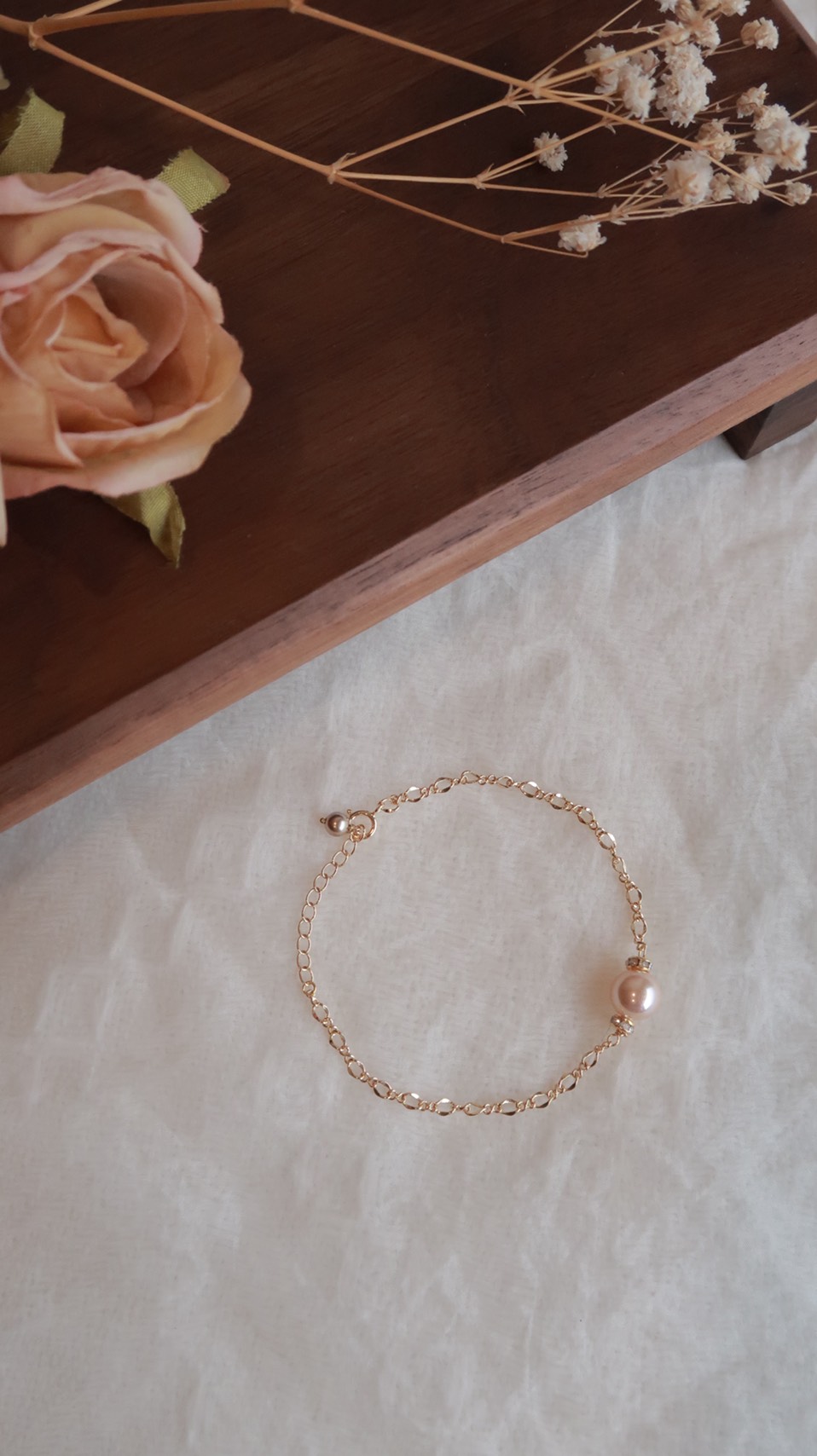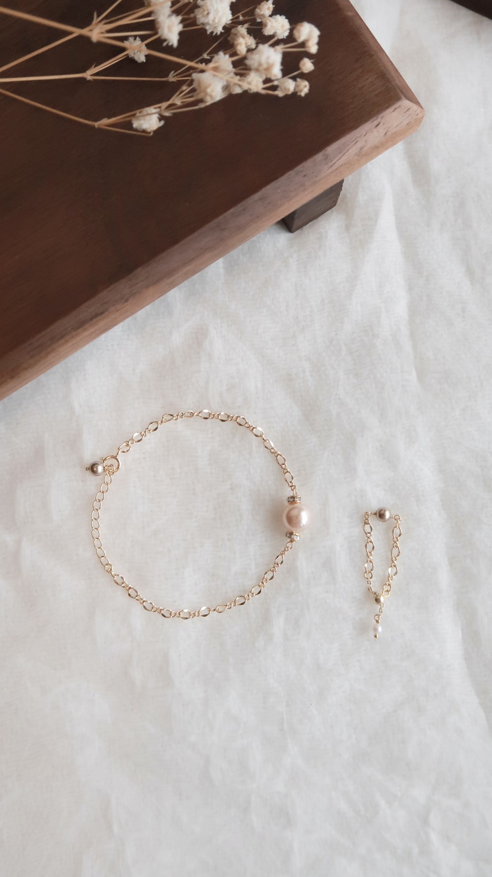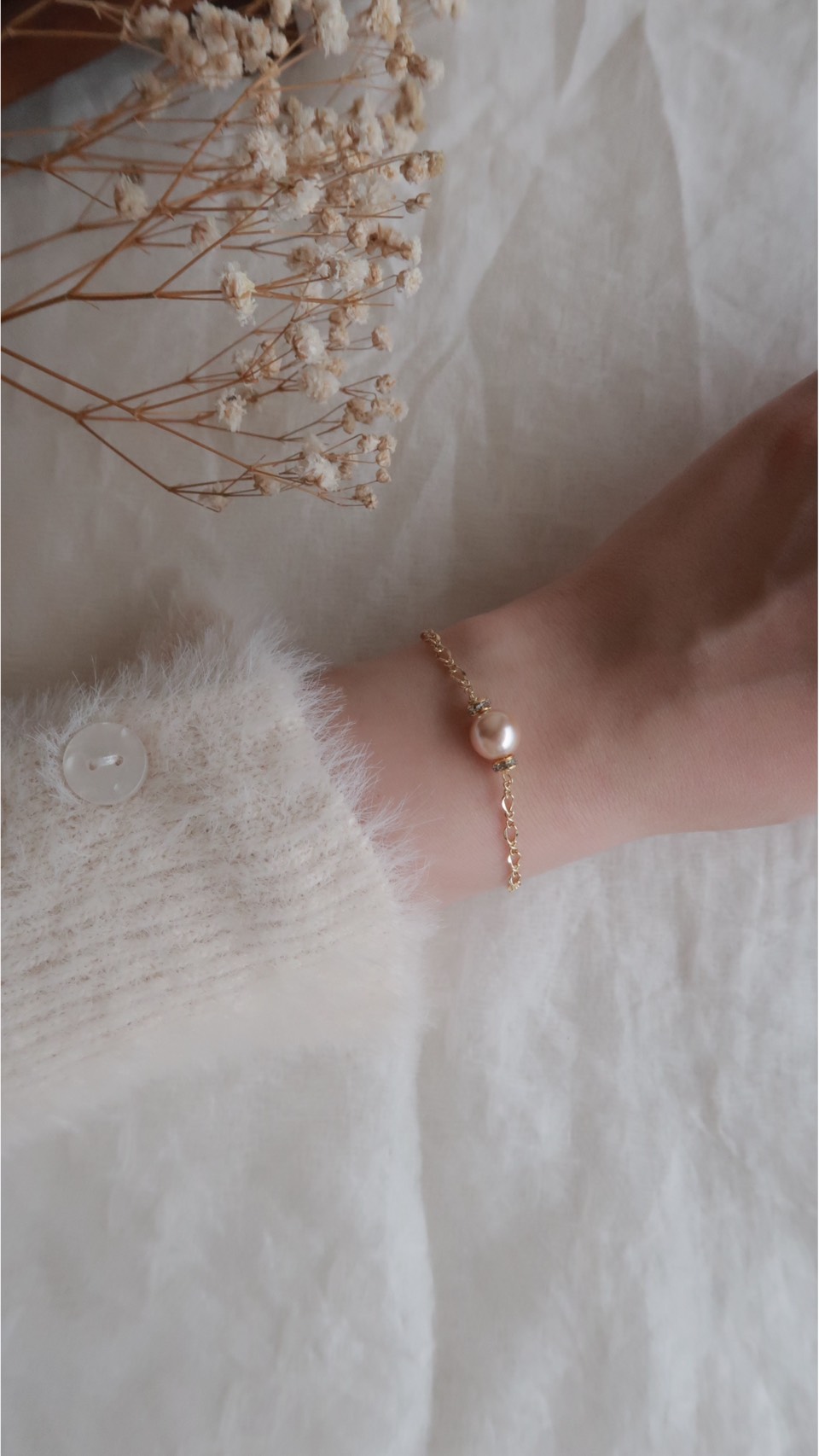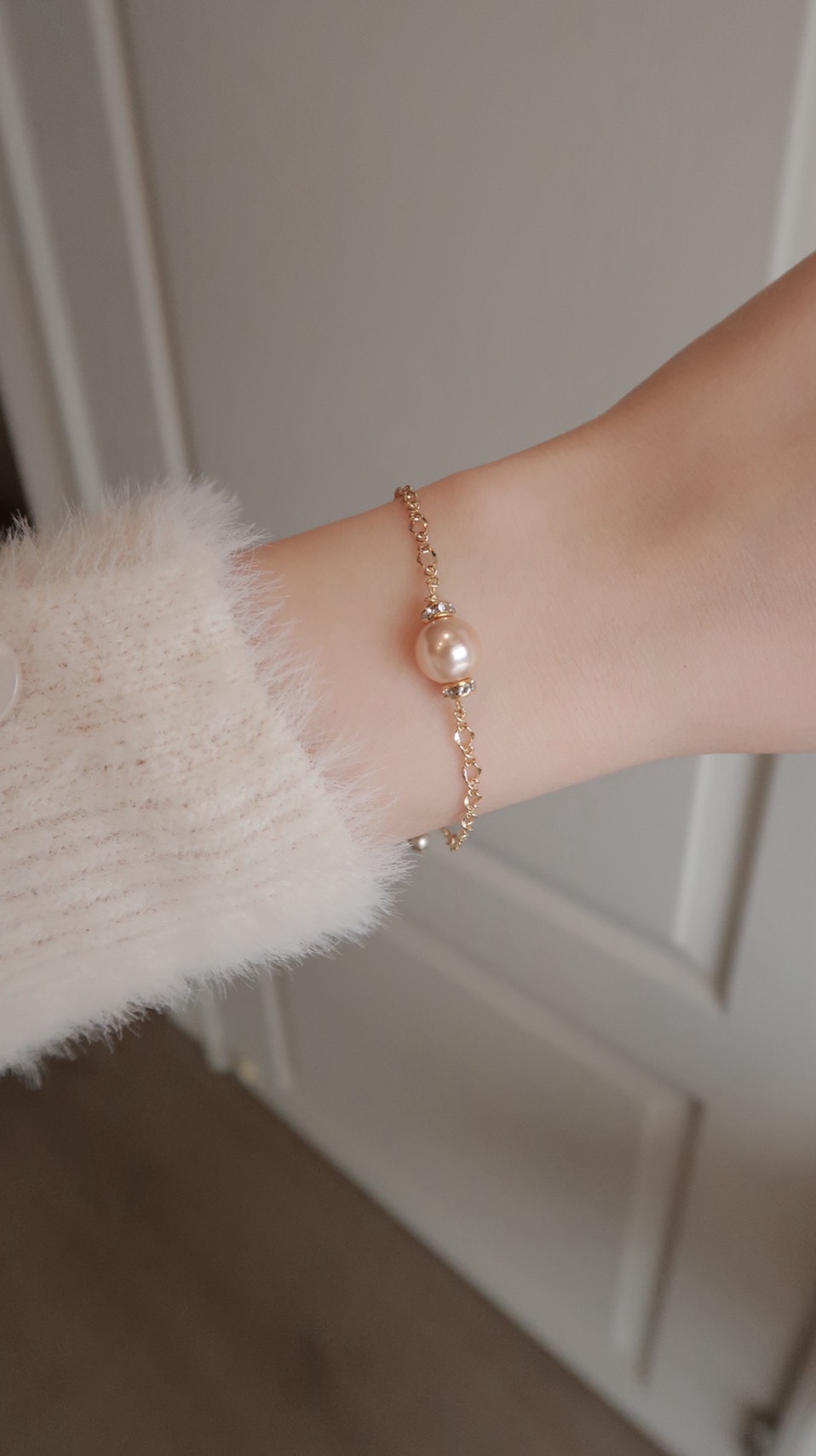 天生好命香檳珍珠環鑽手鍊