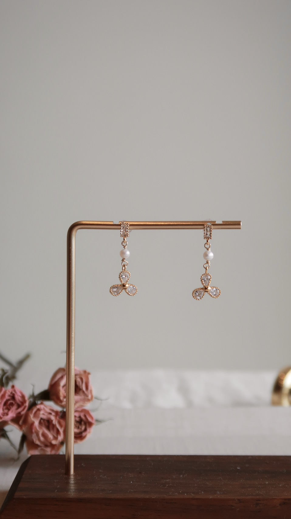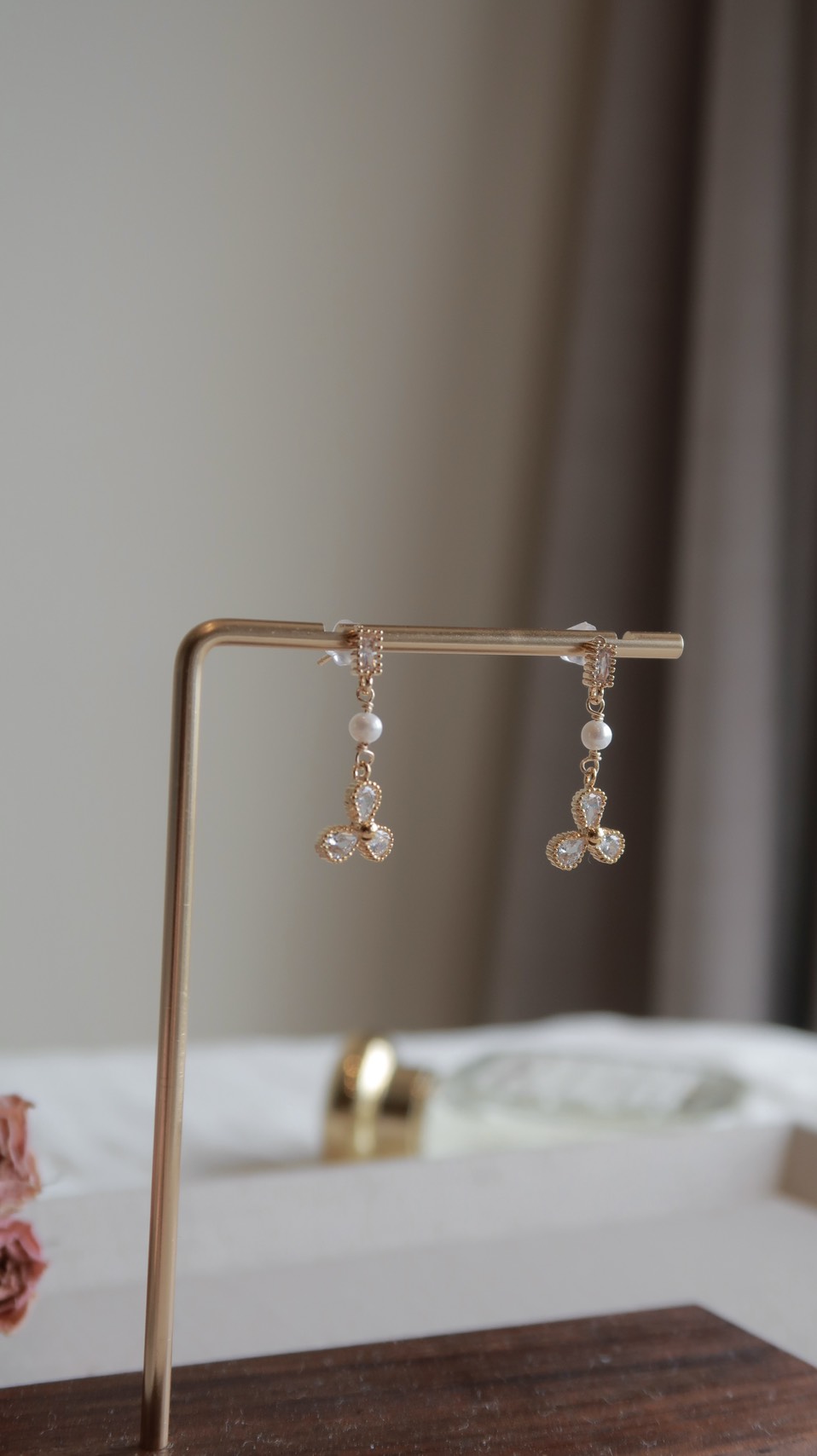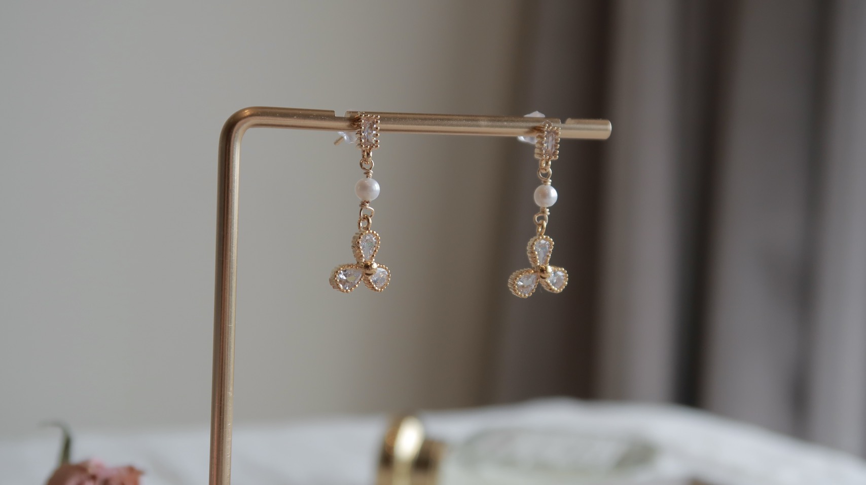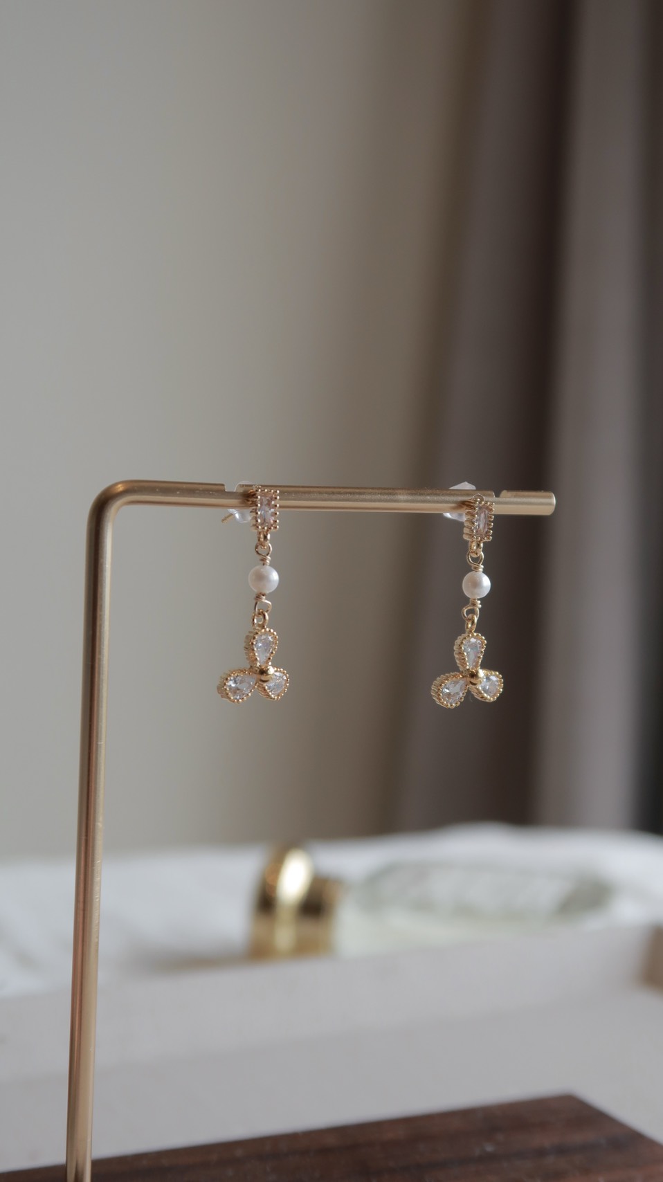 三葉草天然珍珠鋯石耳環