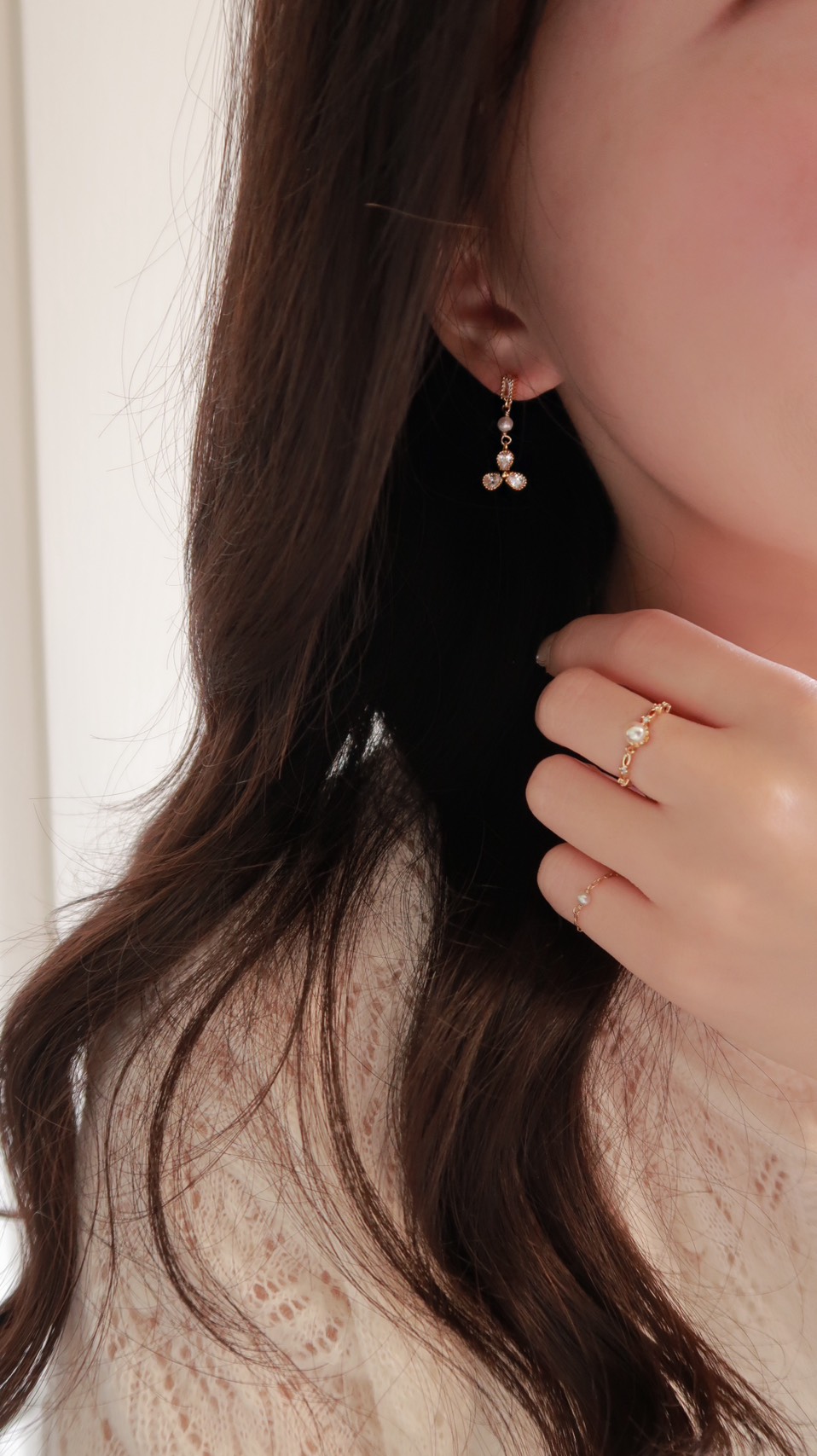 交錯鏤空小珍珠開口戒